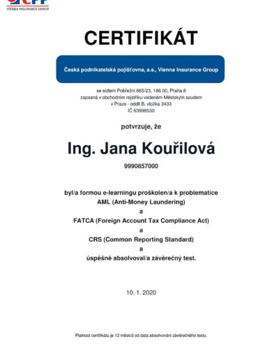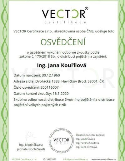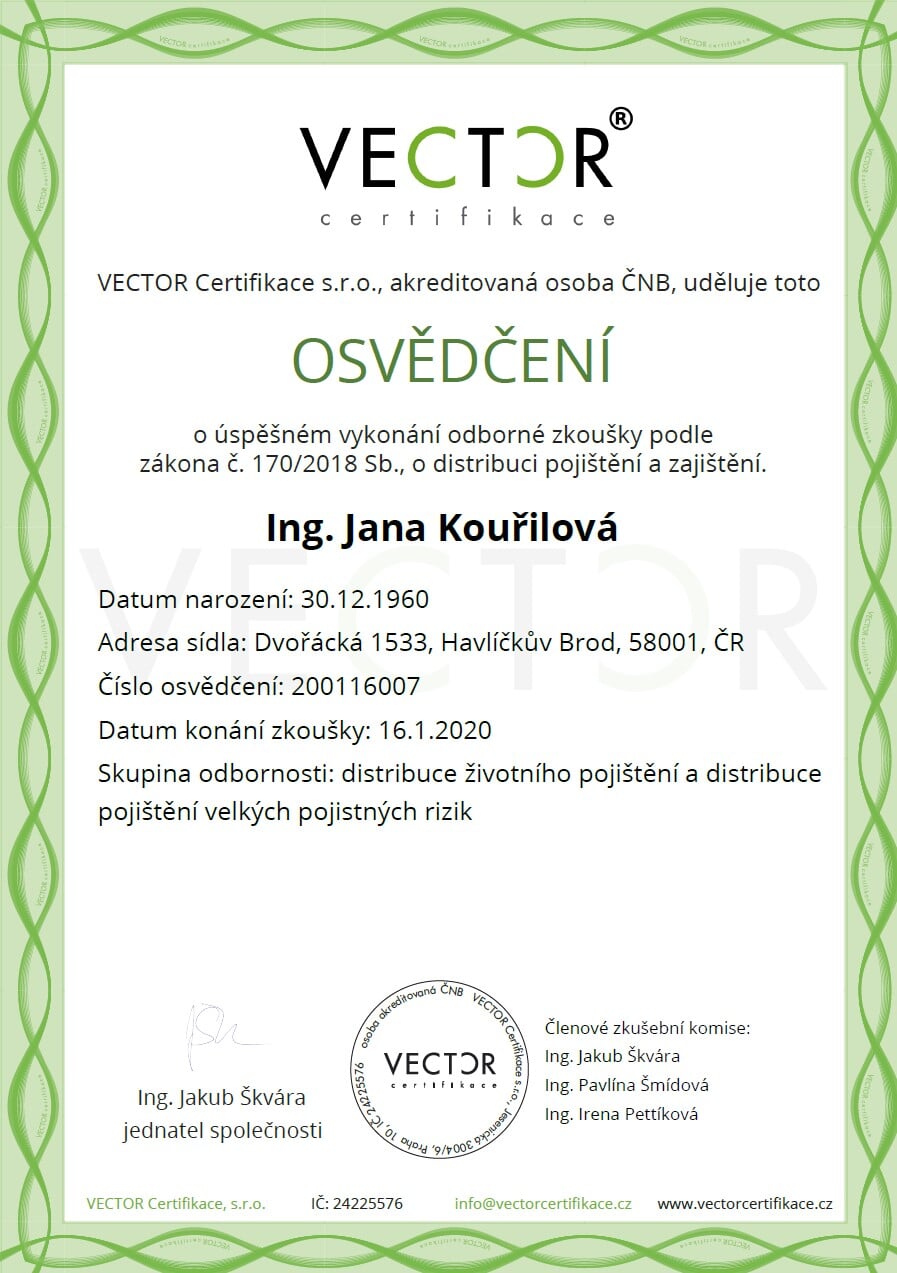 Ing. Jana Kouřilová působí na pojistném trhu od roku 1990, přes 33 let pojišťuje v různé právní formě OSVČ, s.r.o.